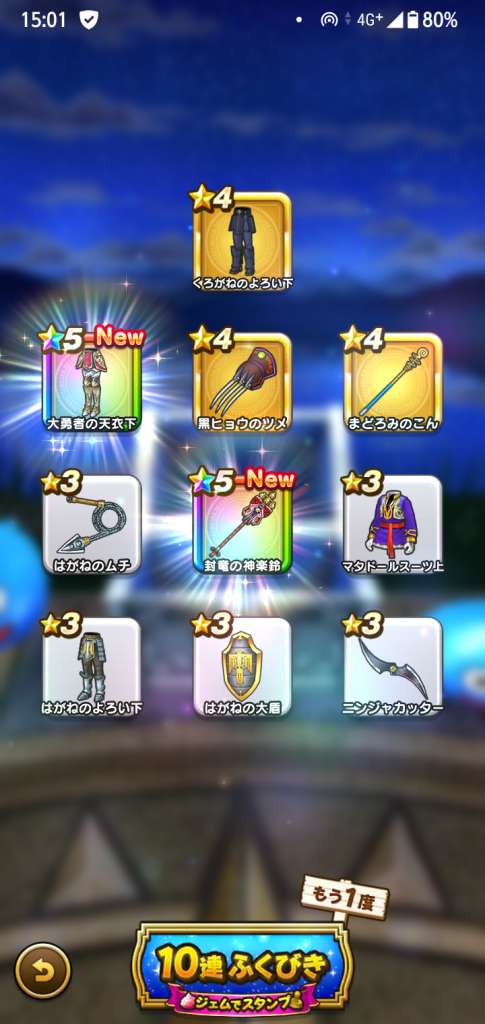 武器はいつかインフレに追い抜かれる運命だけど勇者姫の盾のまもたて+守備力上昇はこの先ずっと使えると考えると一番の当たりだと思う