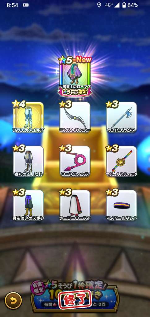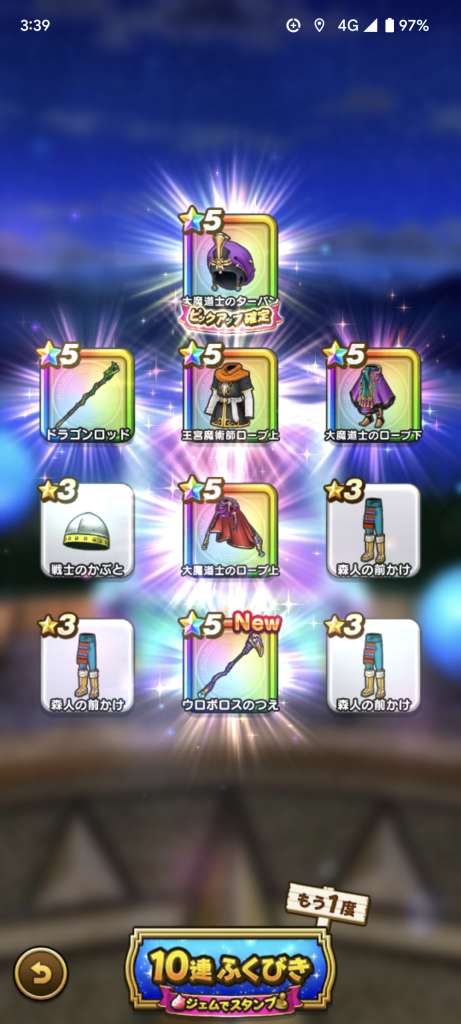 出たPU4つは全て服上、杖はオマケでもらったやつだけでした😂