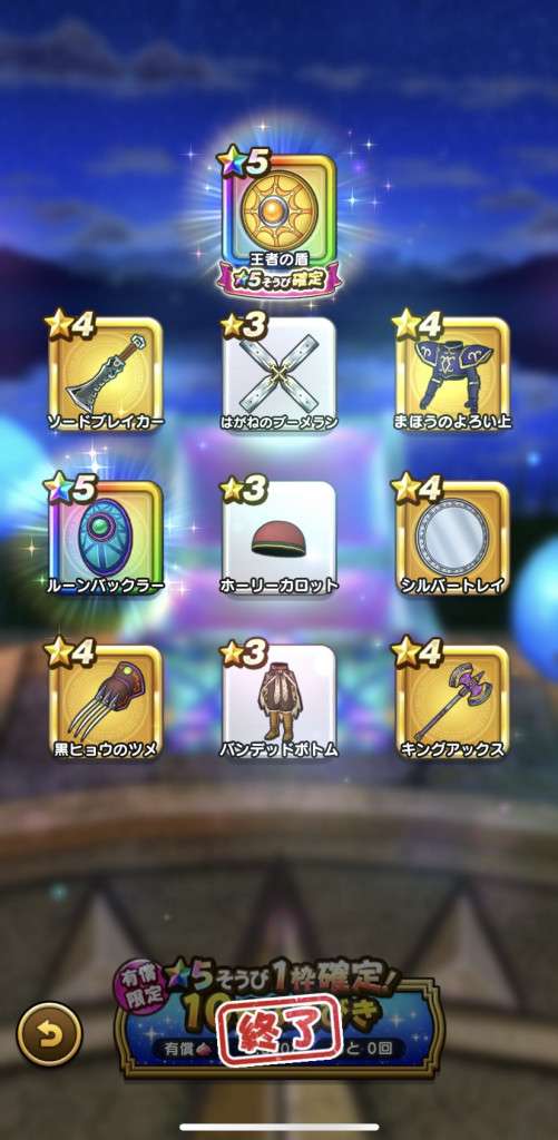 チケットが仕事してくれた…銀箱+光も流星もスラミチカットインもなかったからいきなり箱が虹に変化してビビりました