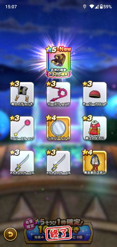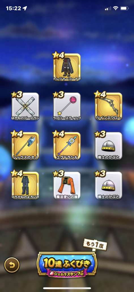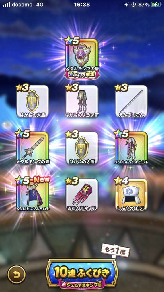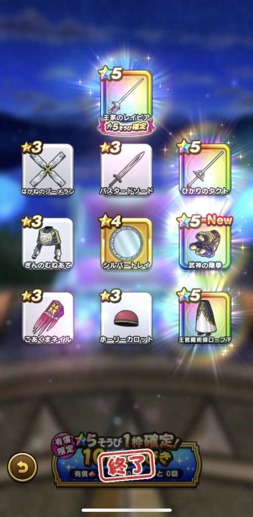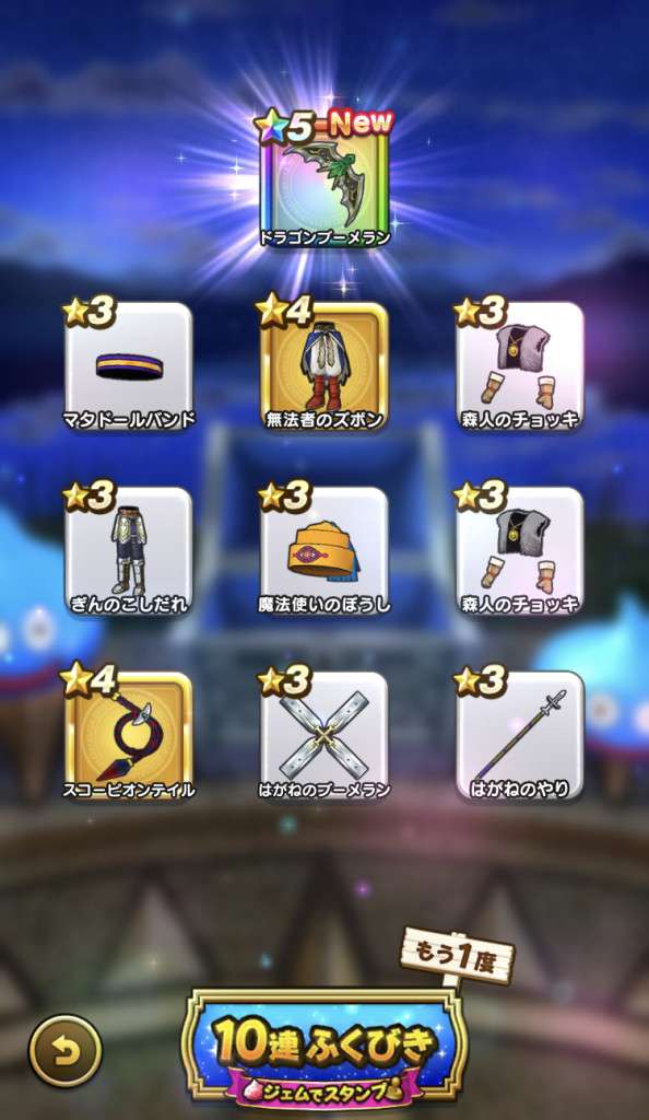 マイレージや配布で40連、プラチナウィングと最後はドラゴンブーメラン😇