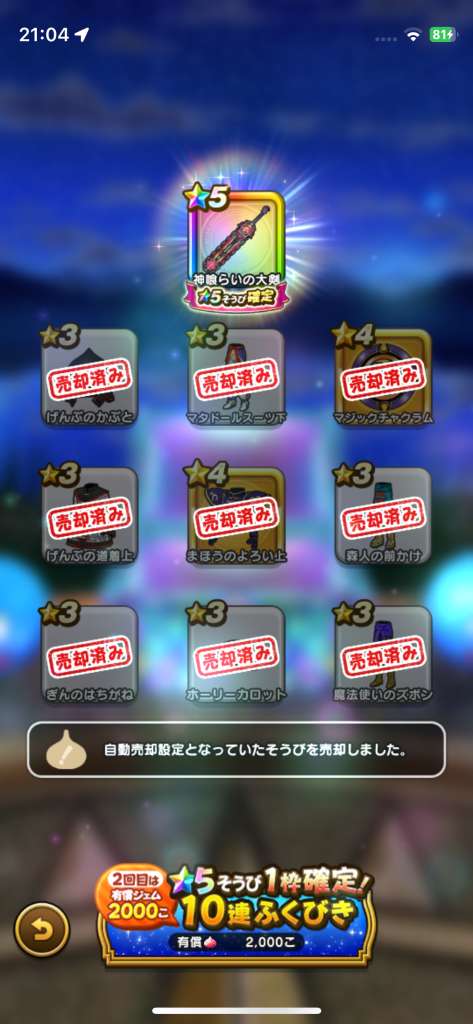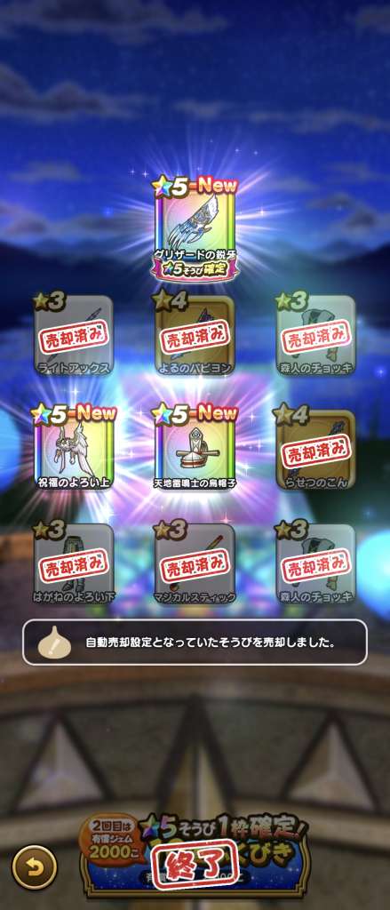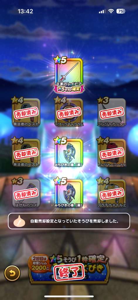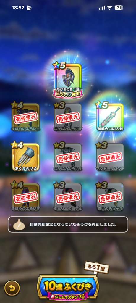 ジンクスを信じるのも馬鹿らしくなってすぐガチャ引いてたら、急に当たらなくなりました。神喰剣も天井。