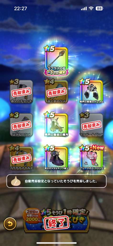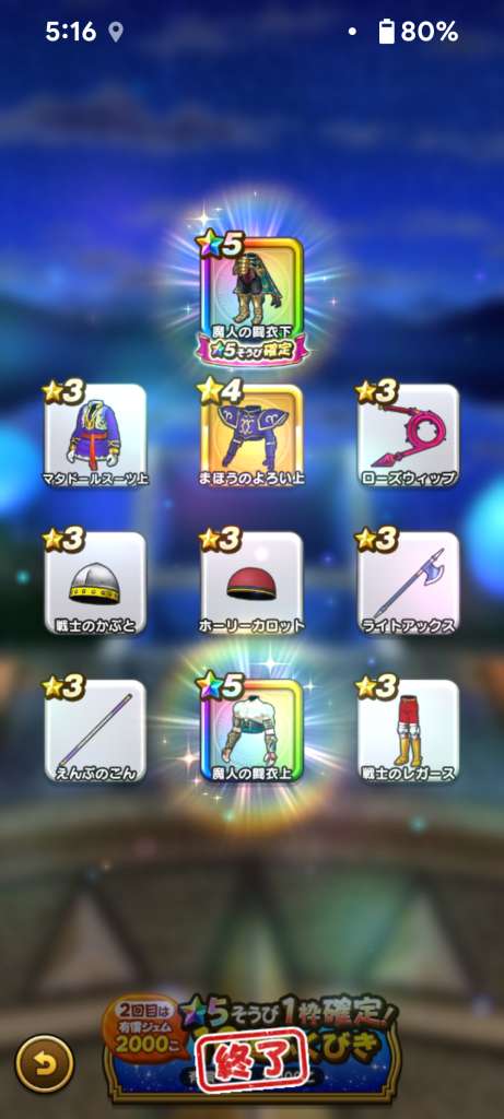 チケットと有償ジェムで星5確定までで2本確保。