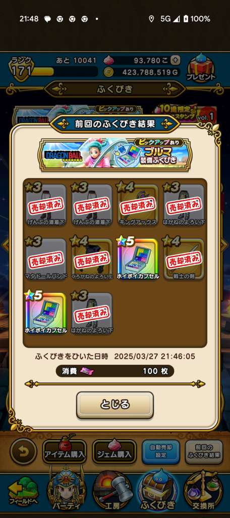 ドラゴンボールは何も引けなかったけど、久しぶりに勝った