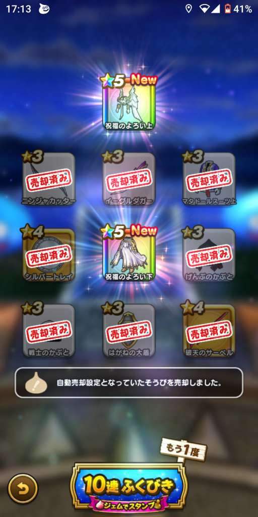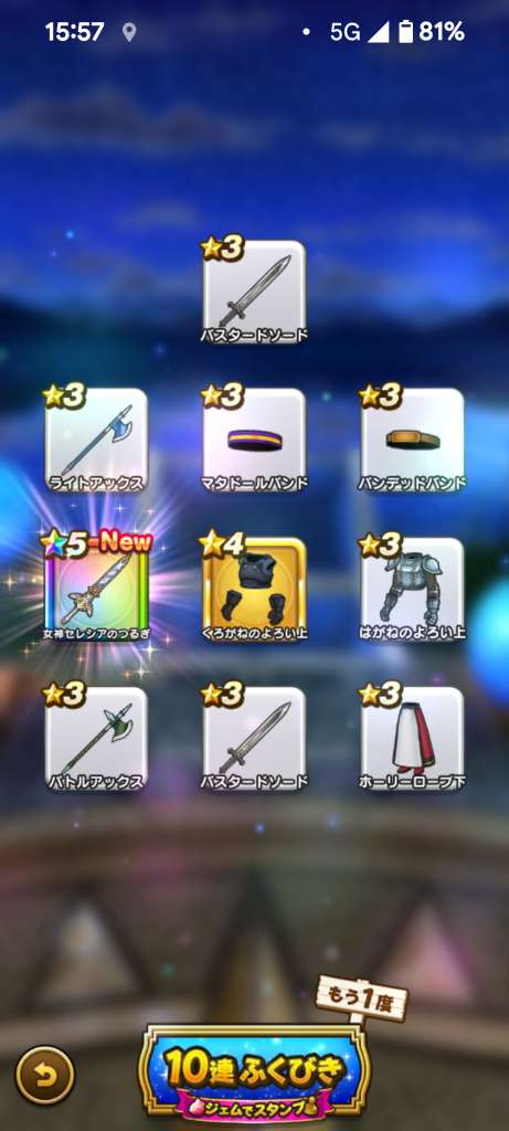 わたしは、無償ふくびき券で武器がでる確率1/20くらいだよ💦