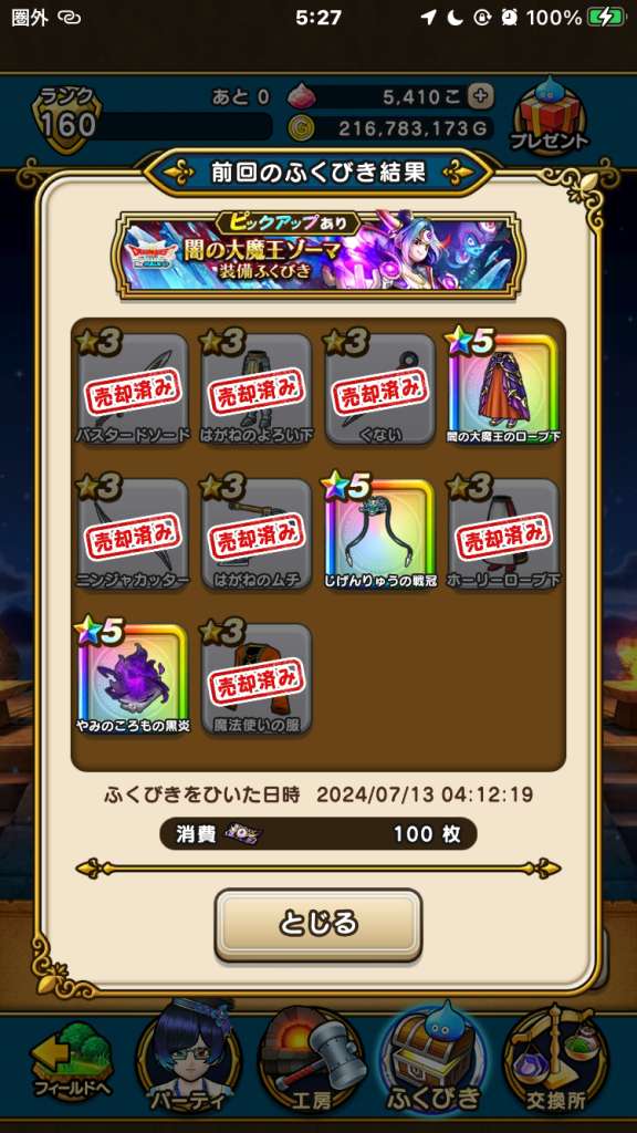 結果、160連かかりましたが、武器に加え防具2つずつと月下美人をゲット