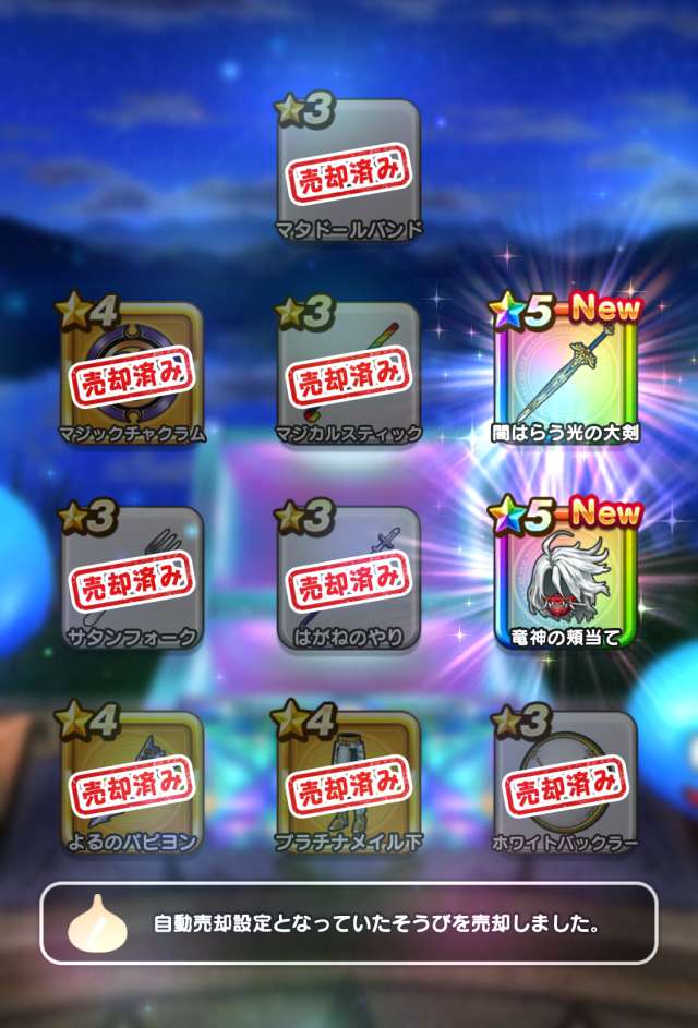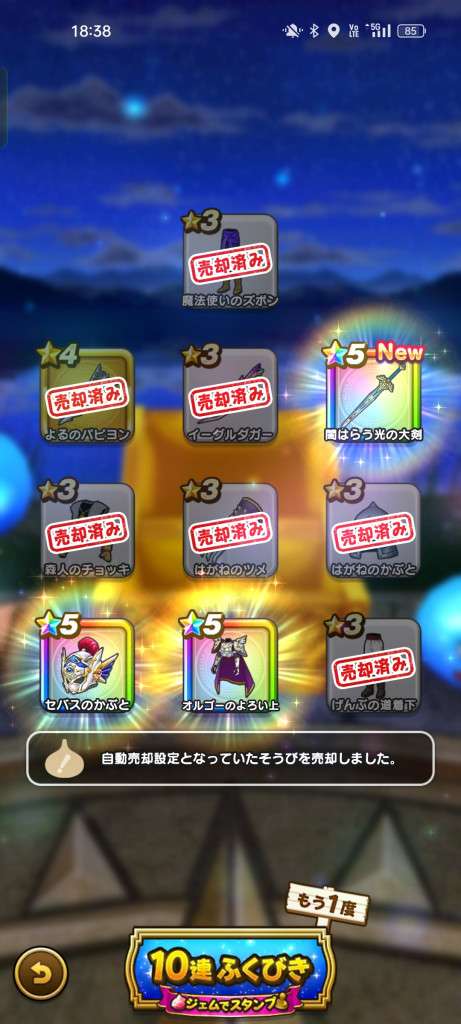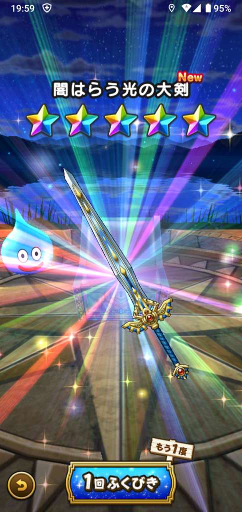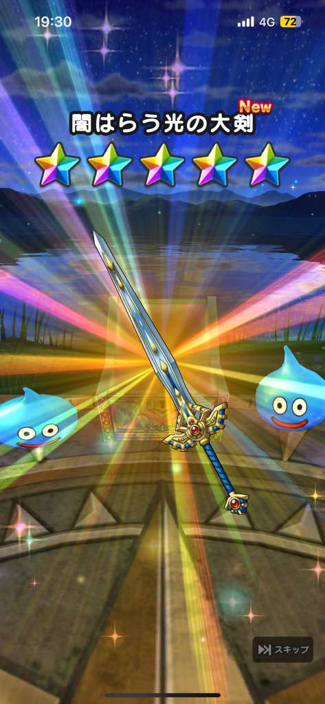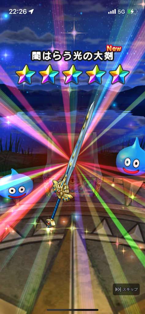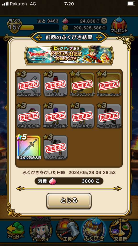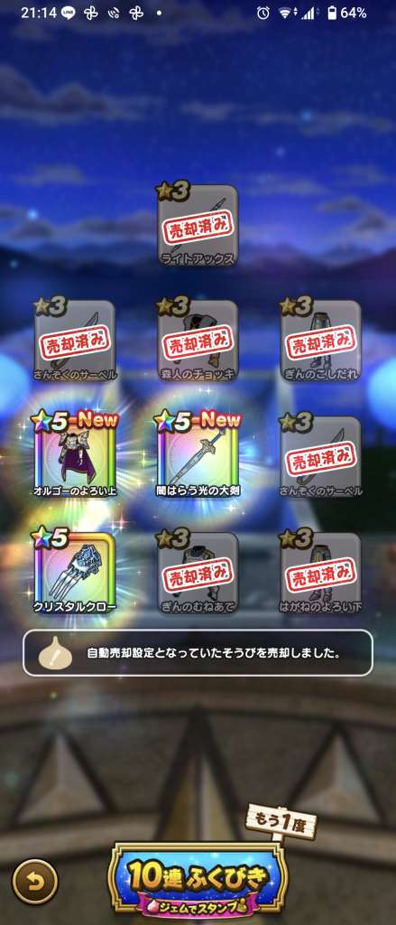 半年溜めたジェムぶっぱで、剣と盾だけ当たれば即撤退で引きました。