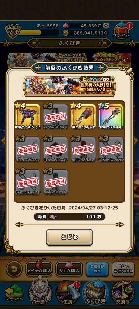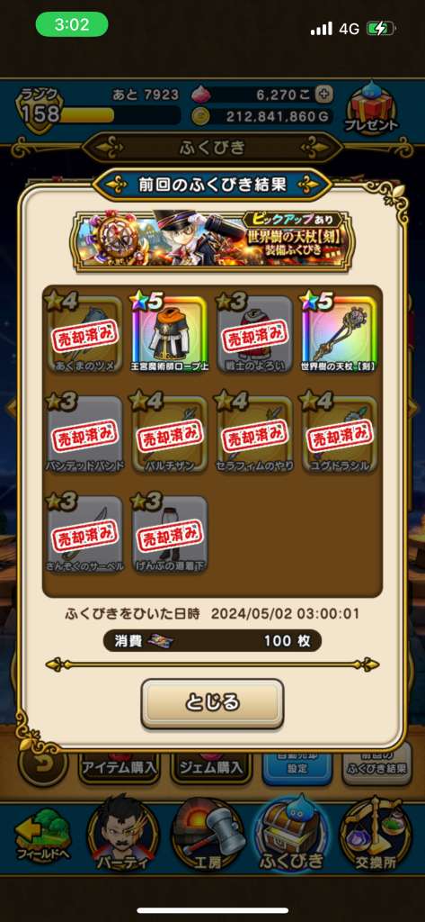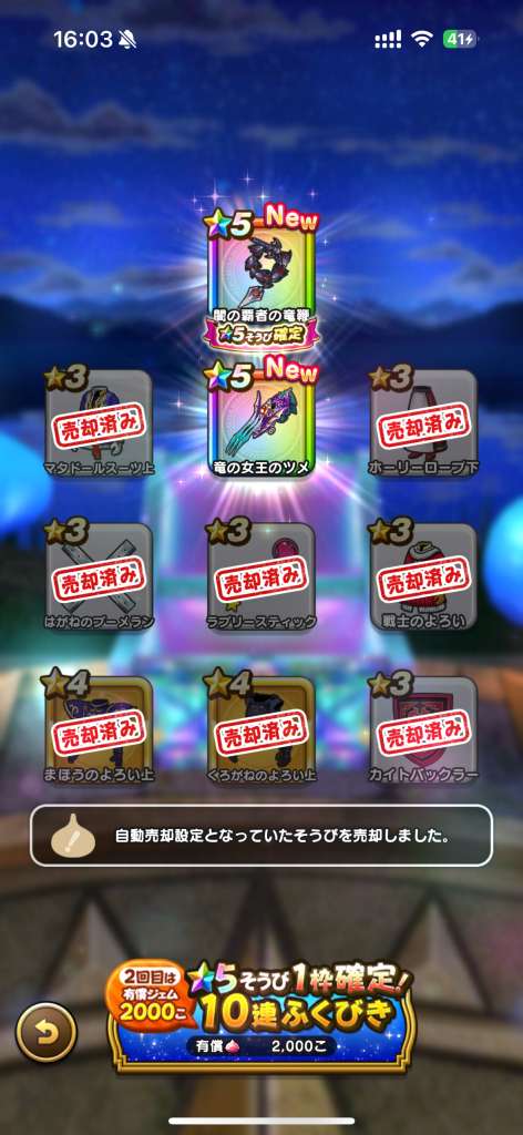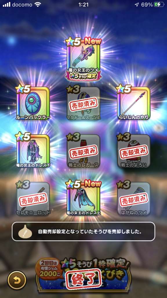 3:00の伝説は本当でしたね!竜の女王のツメ出ました✨……有償確定2回+ジェム100連目で😂