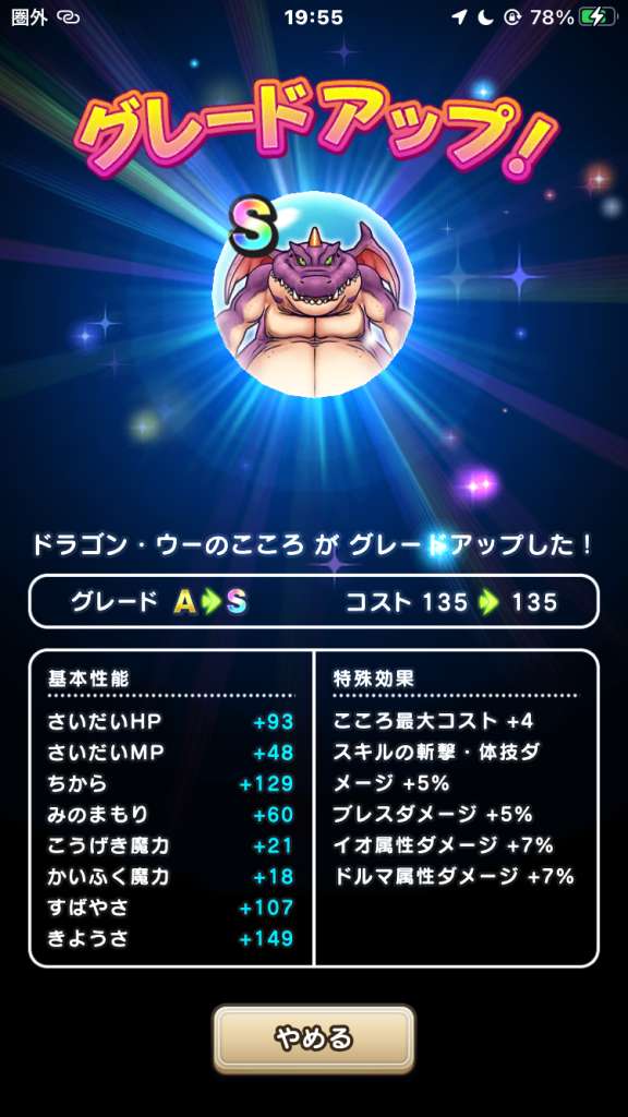 あなたは常設メガモンですか?ってぐらいのDのオンパレード。地図で80匹以上倒してA2だったけど、遂に直Sがっ!!
