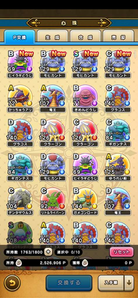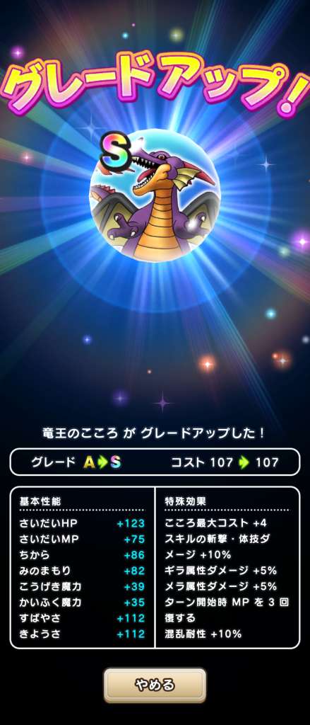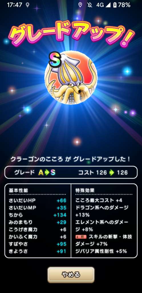 女神ペルセリアのこころSの性能と必要個数
