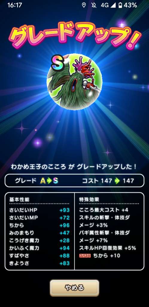 女神ペルセリアのこころSの性能と必要個数