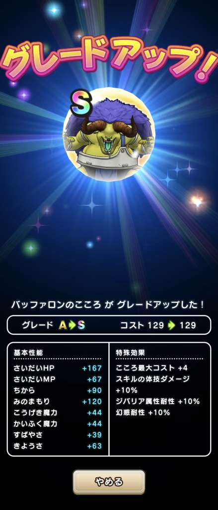 破壊の邪神シドー(覚醒)のこころSの性能と必要個数