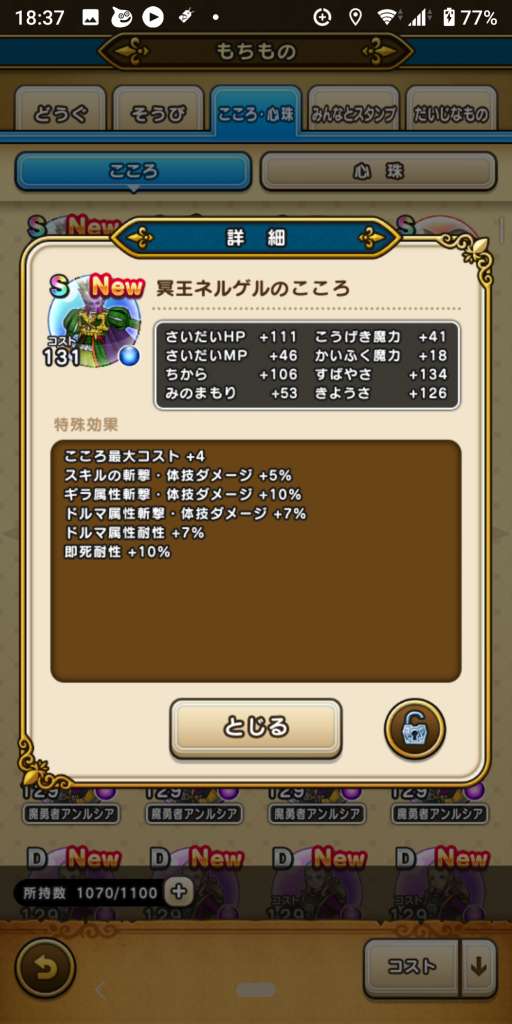 破壊の邪神シドー(覚醒)のこころSの性能と必要個数