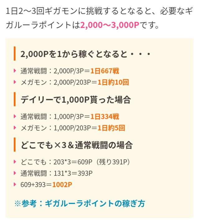 ギガモンが厳しい人はギガモンやる時間よりギガモンpt集めが難しいのが主な理由では。仕事や家庭で時間が取れない人はそんなに狩れないでしょうし。