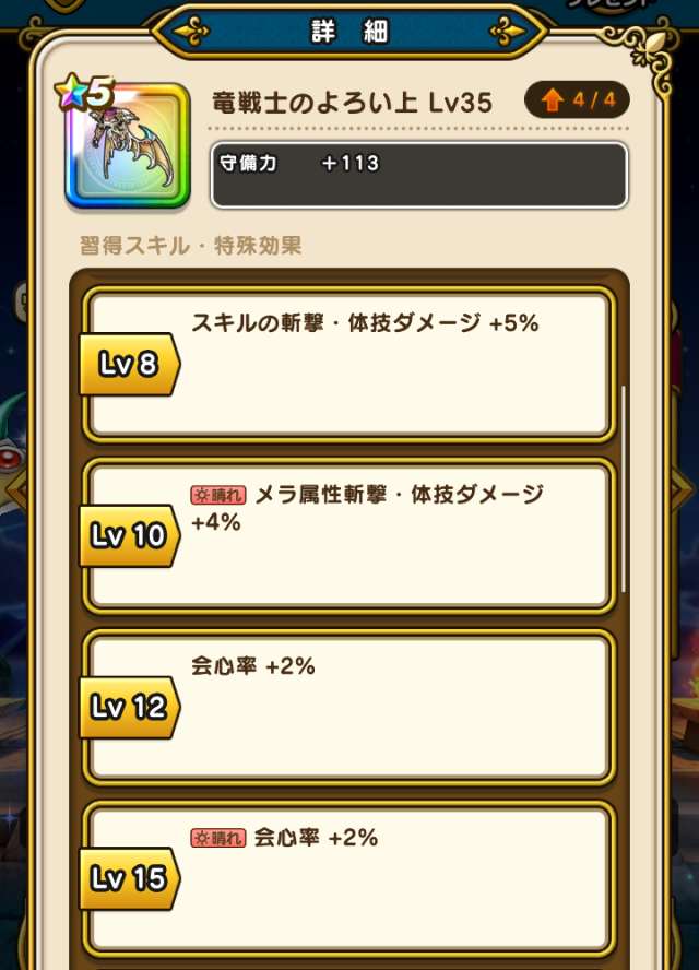 Lv40ドラゴン系へのダメージ+5%継承可