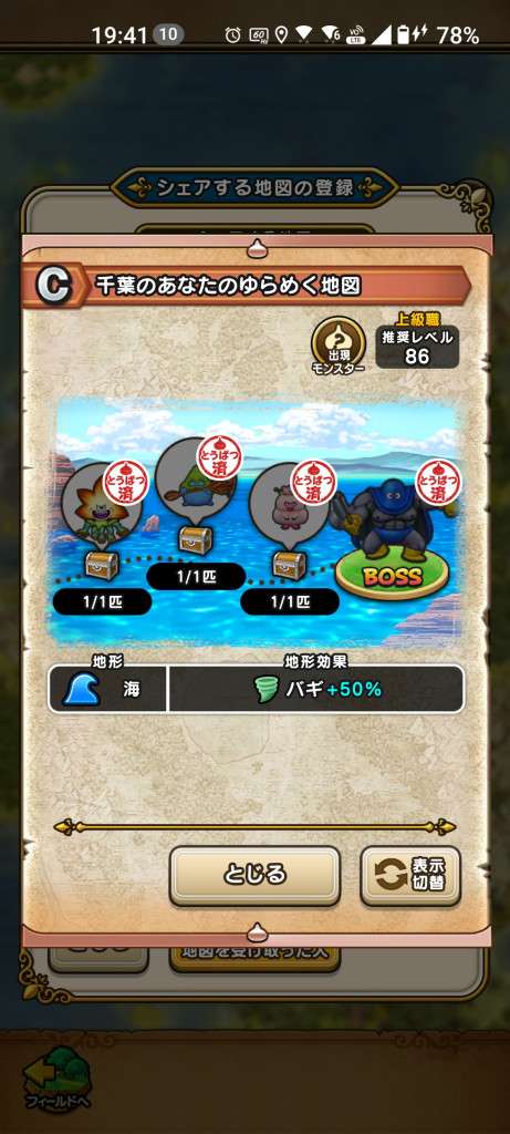 掲示板で最適な地図を他のプレイヤーと交換とかしだしたら大変だけど、3日ごとに作成される地図と適当に出てくる地図をルーラポイントで受け取るくらいなら、そこまで負担感はないかな