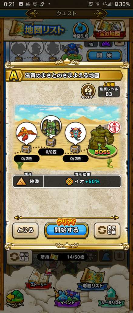 クリアした地図をリセットすることも可能です(一部リセット不可もあります)。1枚につき1ポイントで上限は50ポイント。