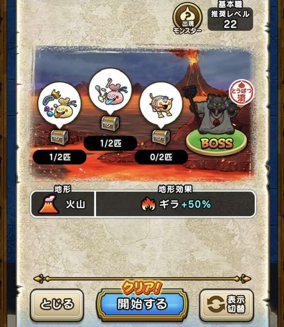 | ボスモンスター お宝モンスター | 討伐済み 未討伐 |