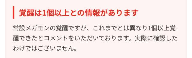 本来は覚醒は1個ですが、常設メガモンは2個目以降もできます。
