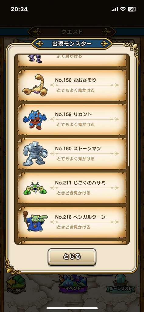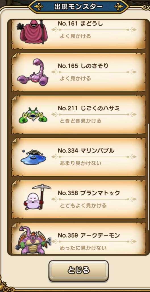 - A:地図限定(黒龍丸やハヌマーン枠)が2種類お宝にいる(めったに枠も稀に掲載)
