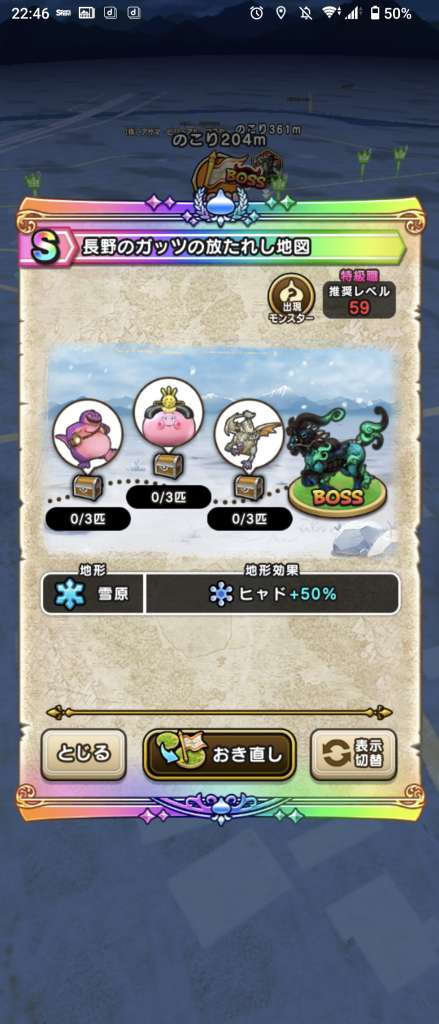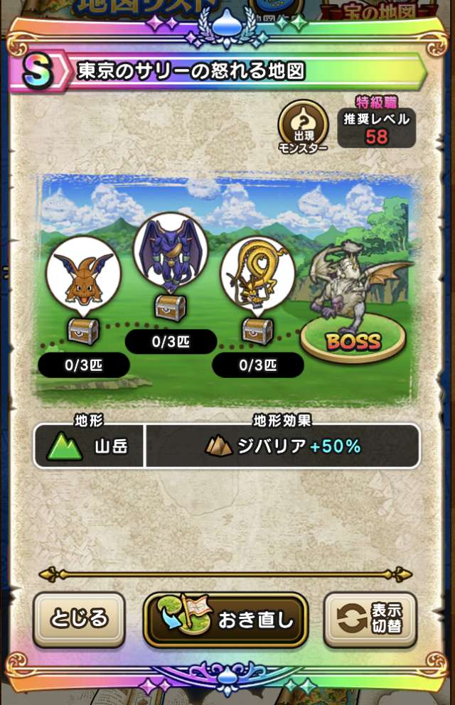 - S:地図限定(黒龍丸やハヌマーン枠)が2種類お宝にいる(同種類)
