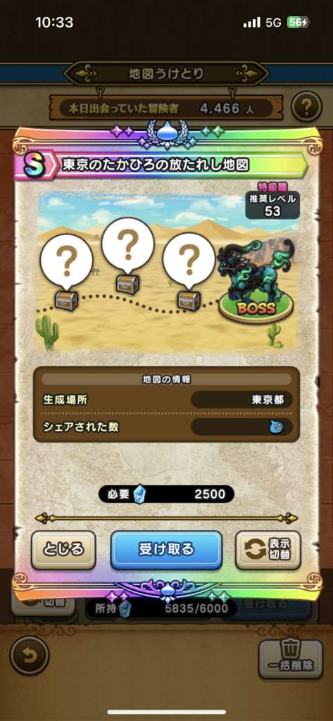 ドラクエウォークの宝の地図の高レア(S+/S/A/メタルキング/ご当地/レベリング)の宝の地図一覧を人気や需要の高い地図を中心にまとめています。受け取りおすすめお宝モンスターやシェアの登録方法、リセットのやり方も記載しています。