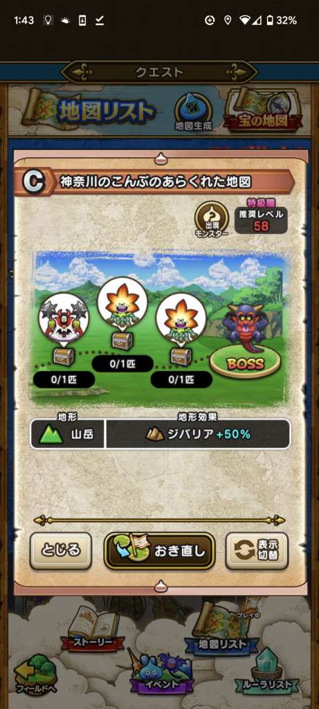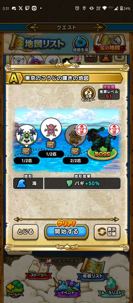 • S:地図限定(黒龍丸やハヌマーン枠)が2種類お宝にいる(同種類)
