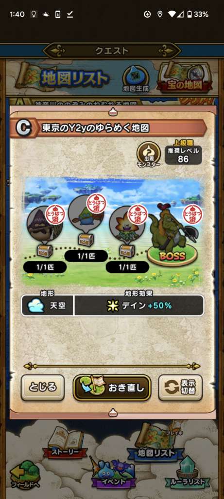72時間で4万歩あるいたから当然Sランクくらいあるやろ~、と思って地図生成したらAランクだった。戦闘回数とつぼ割りが足りなかった?