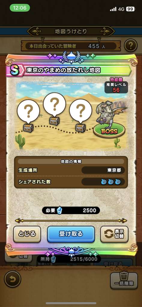- S:地図限定(黒龍丸やハヌマーン枠)が2種類お宝にいる(同種類)