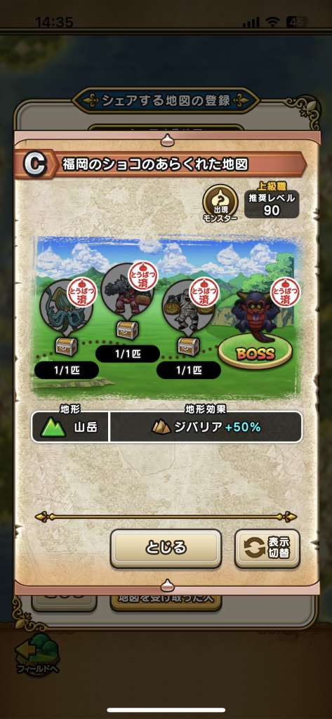 ドラクエウォークの宝の地図の高レア(S+/S/A/メタルキング/ご当地/レベリング)の宝の地図一覧を人気や需要の高い地図を中心にまとめています。受け取りおすすめお宝モンスターやシェアの登録方法、リセットのやり方も記載しています。