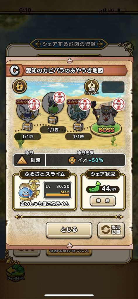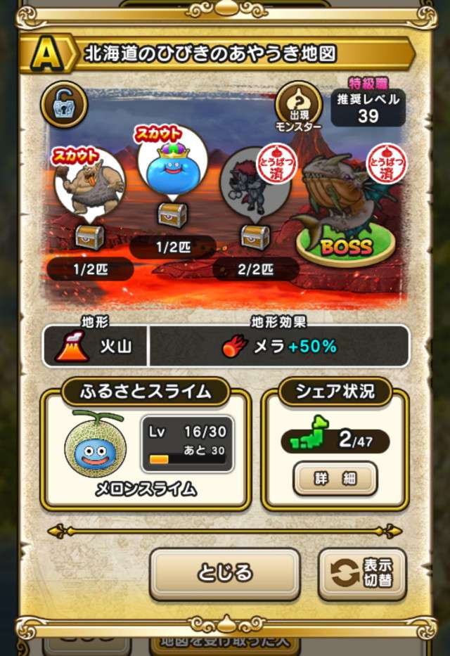 ドラクエウォークの宝の地図検索ツールです。配布中の地図や、人気順やお宝モンスターの多い順に検索可能!チェック機能もあります!仲間モンスターや出現モンスターでの検索や、確認用の画像も掲載しています!