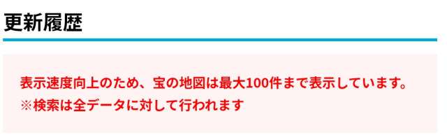 表示速度向上のため、宝の地図は最大100件まで表示しています。※検索は全データに対して行われます