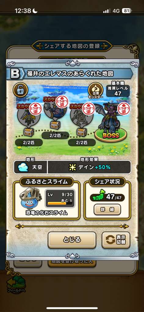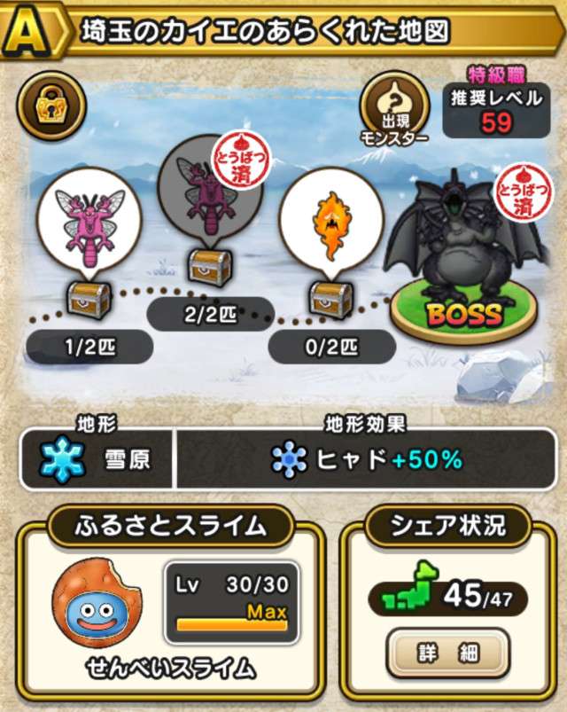 ドラクエウォークの宝の地図検索ツールです。配布中の地図や、人気順やお宝モンスターの多い順に検索可能!チェック機能もあります!仲間モンスターや出現モンスターでの検索や、確認用の画像も掲載しています!