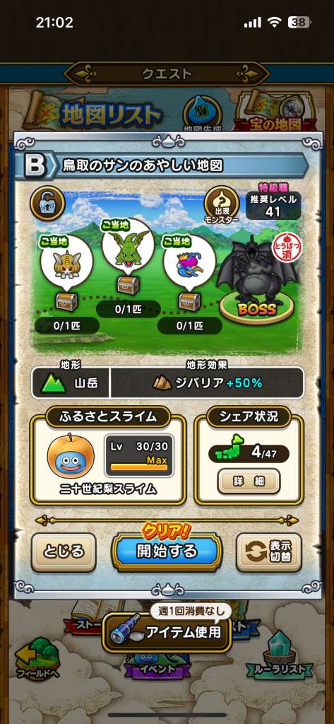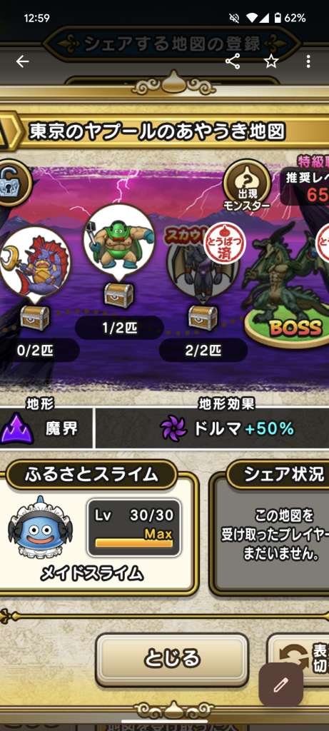 ドラクエウォークの宝の地図検索ツールです。配布中の地図や、人気順やお宝モンスターの多い順に検索可能!チェック機能もあります!仲間モンスターや出現モンスターでの検索や、確認用の画像も掲載しています!