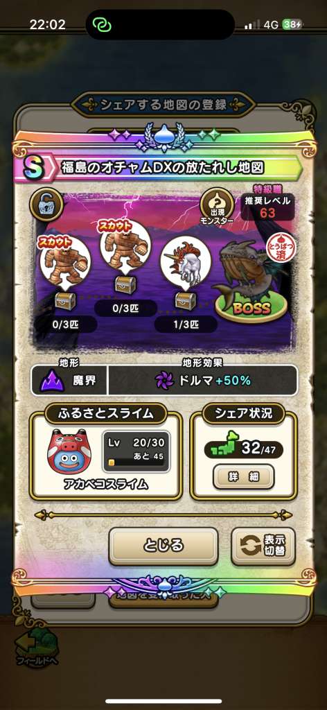 同じ魔王の地図でもレベルが異なる場合に投稿可能でしたが、投稿できないようにしました。