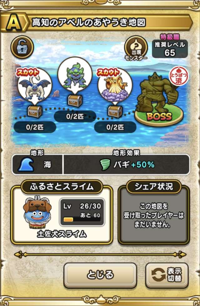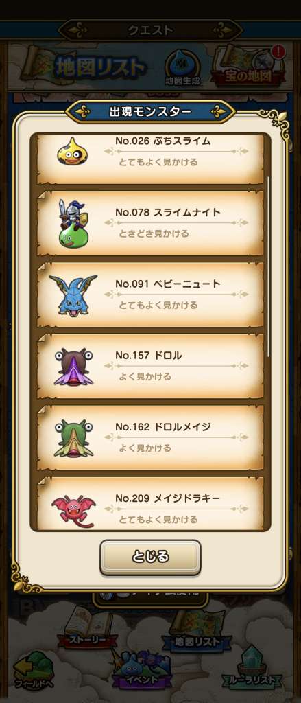 ドラクエウォークの宝の地図検索ツールです。配布中の地図や、人気順やお宝モンスターの多い順に検索可能!チェック機能もあります!仲間モンスターや出現モンスターでの検索や、確認用の画像も掲載しています!