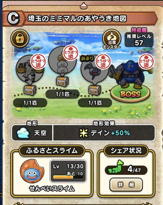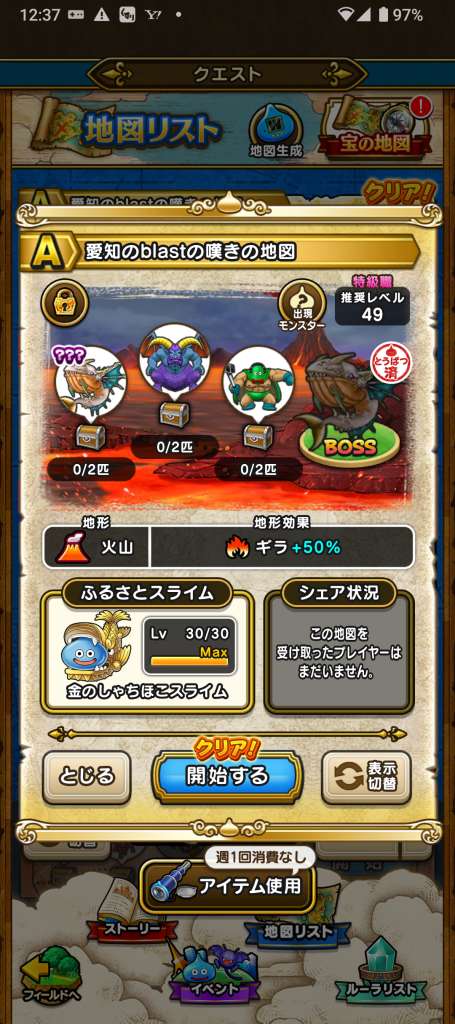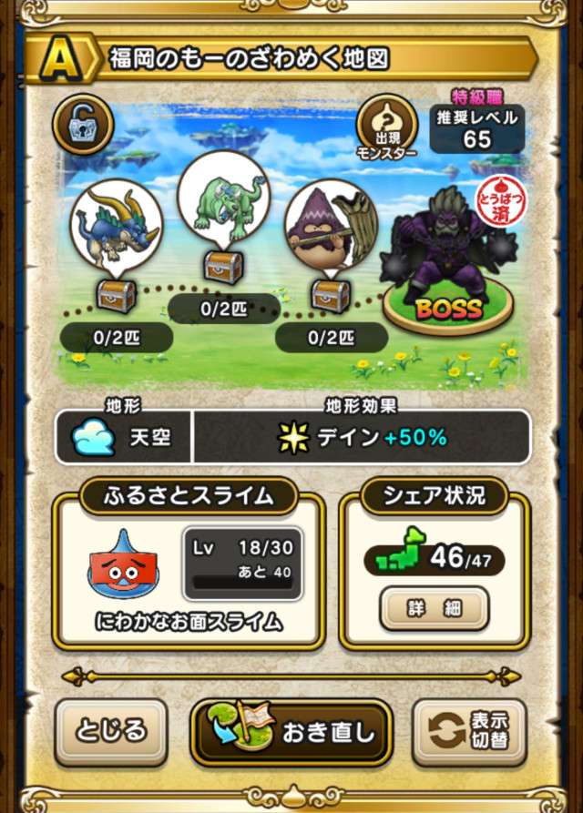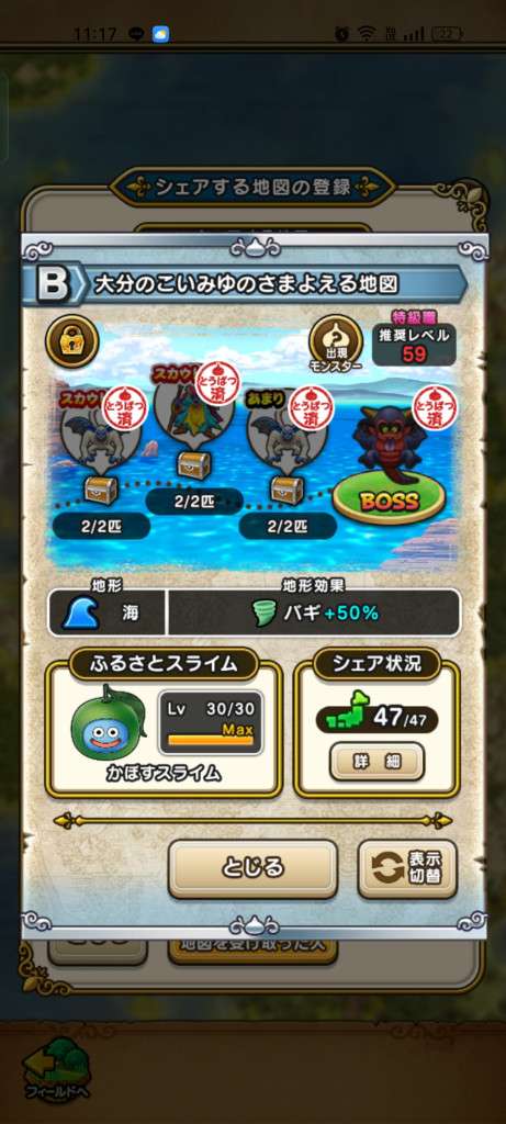 データが入っている地図のみ、出現モンスターが表示されます。