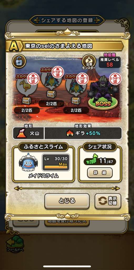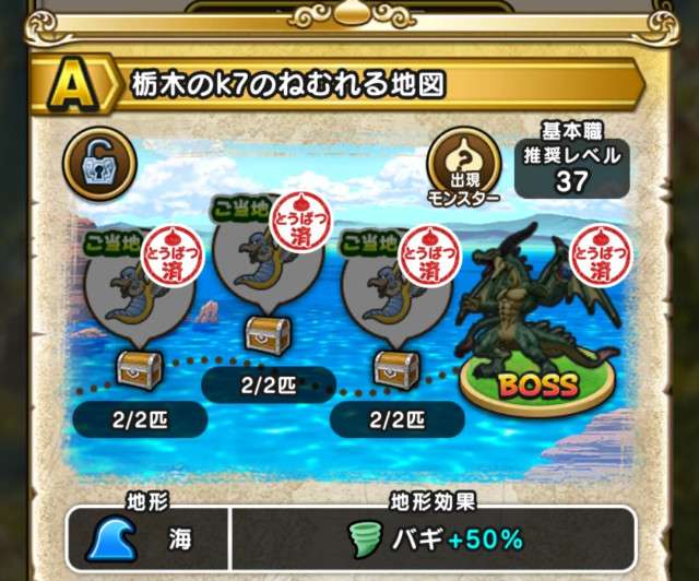 ドラクエウォークの宝の地図検索ツールです。配布中の地図や、人気順やお宝モンスターの多い順に検索可能!チェック機能もあります!仲間モンスターや出現モンスターでの検索や、確認用の画像も掲載しています!
