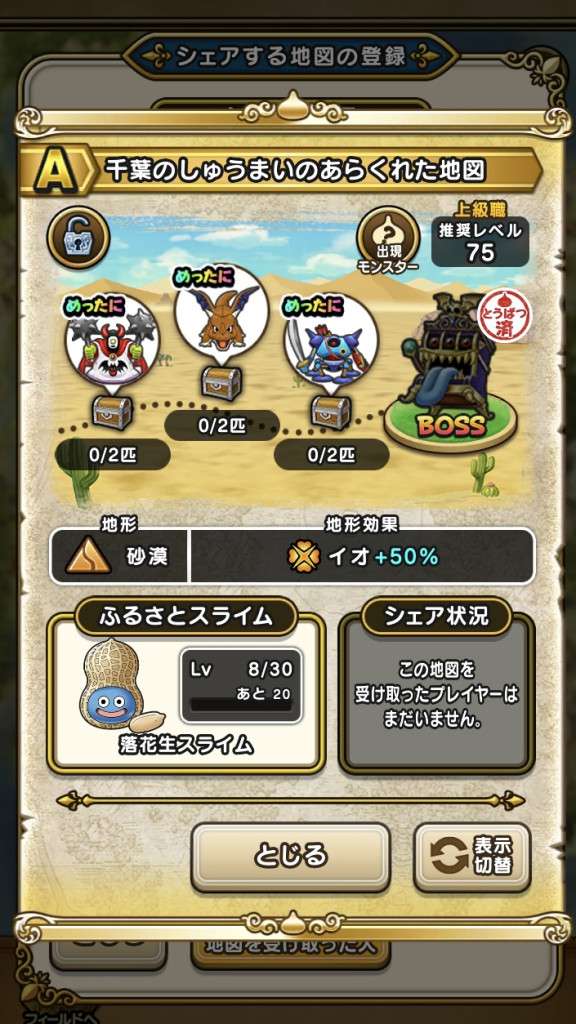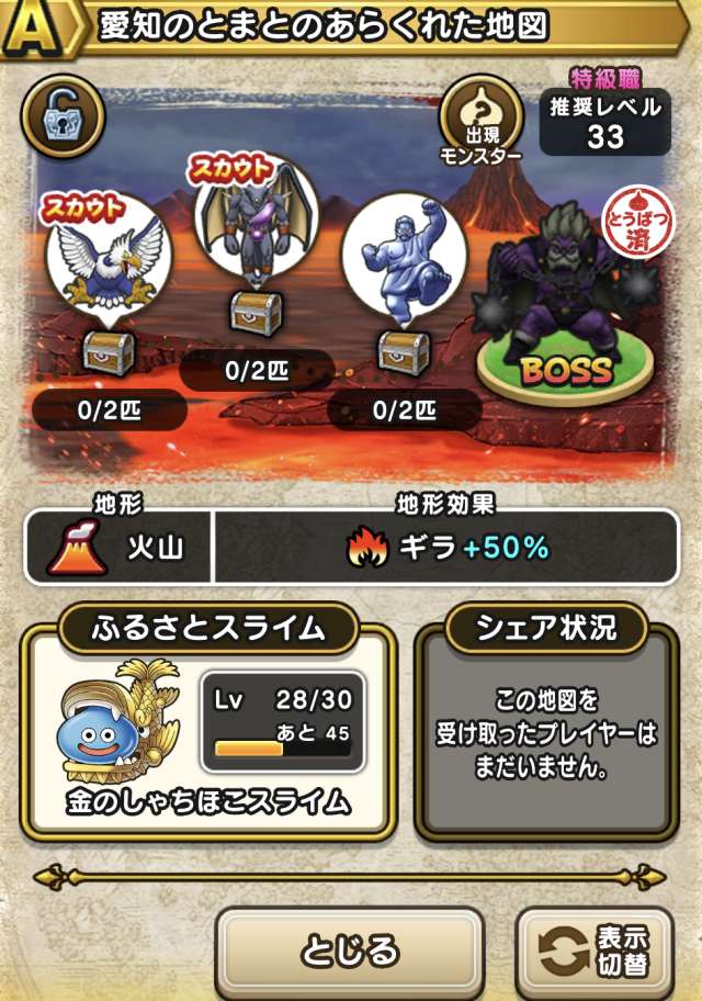 ドラクエウォークの宝の地図検索ツールです。配布中の地図や、人気順やお宝モンスターの多い順に検索可能!チェック機能もあります!仲間モンスターや出現モンスターでの検索や、確認用の画像も掲載しています!