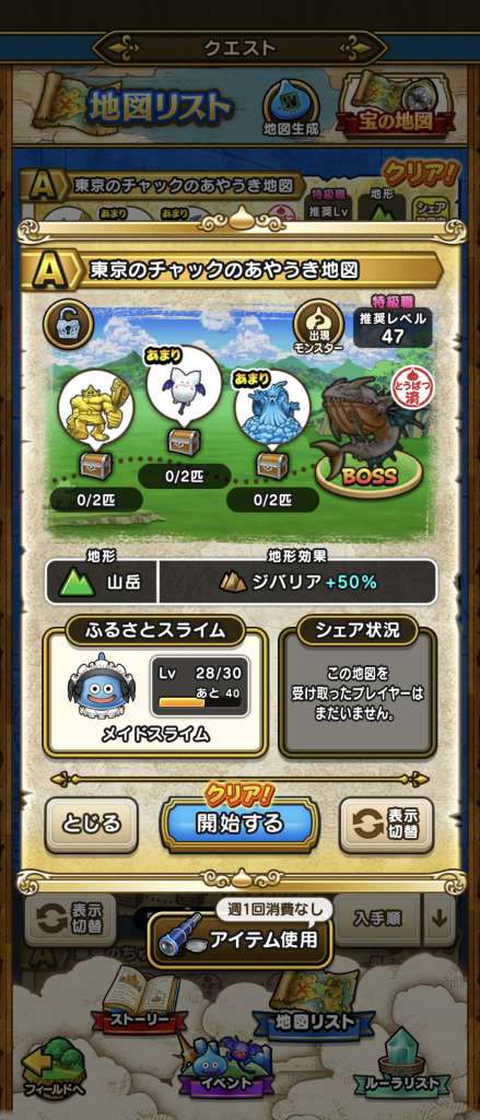 ドラクエウォークの宝の地図検索ツールです。配布中の地図や、人気順やお宝モンスターの多い順に検索可能!チェック機能もあります!仲間モンスターや出現モンスターでの検索や、確認用の画像も掲載しています!
