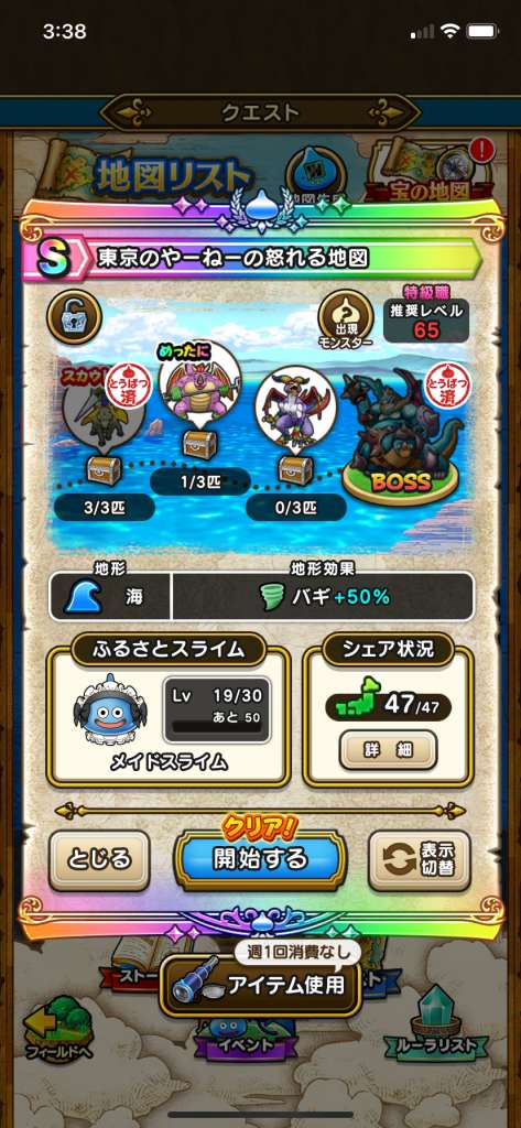オーシャンボーン4体 & 大怪像ガドンゴ3体 取得できる地図です