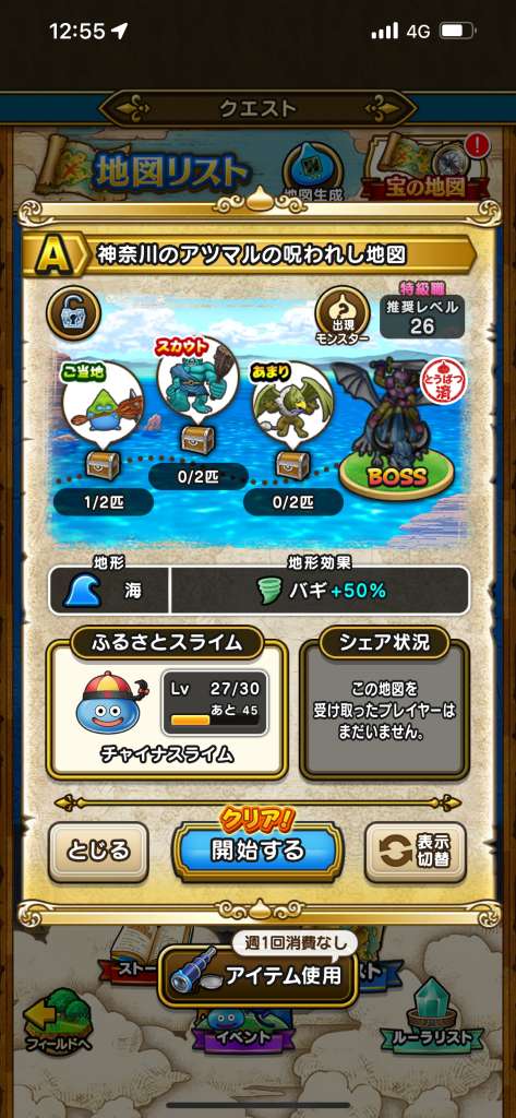 データが入っている地図のみ、出現モンスターが表示されます。