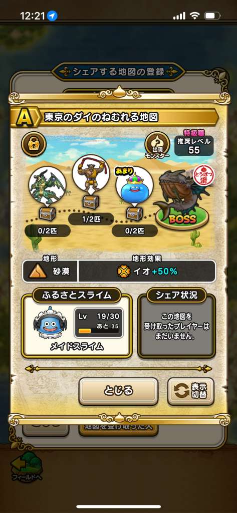 ドラクエウォークの宝の地図検索ツールです。配布中の地図や、人気順やお宝モンスターの多い順に検索可能!チェック機能もあります!仲間モンスターや出現モンスターでの検索や、確認用の画像も掲載しています!