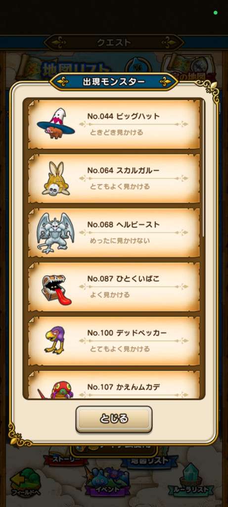 • 出現モンスターの見かけやすさや系統を表示