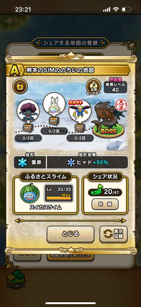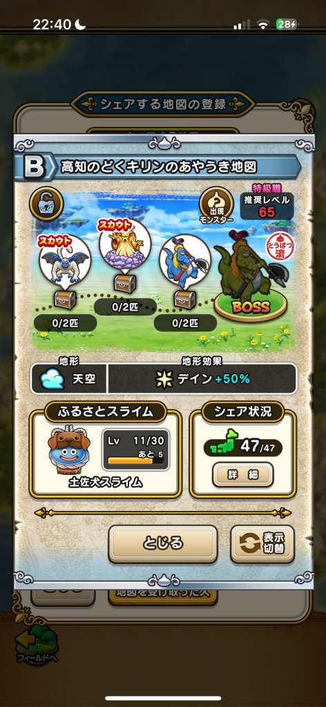 ドラクエウォークの宝の地図検索ツールです。配布中の地図や、人気順やお宝モンスターの多い順に検索可能!チェック機能もあります!仲間モンスターや出現モンスターでの検索や、確認用の画像も掲載しています!