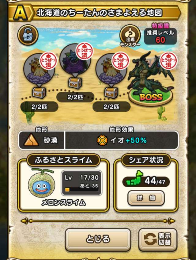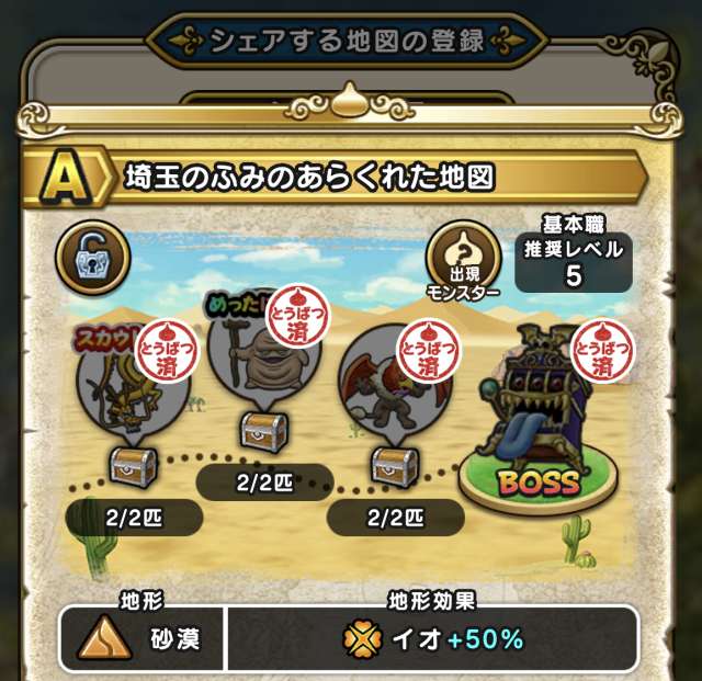 ドラクエウォークの宝の地図検索ツールです。配布中の地図や、人気順やお宝モンスターの多い順に検索可能!チェック機能もあります!仲間モンスターや出現モンスターでの検索や、確認用の画像も掲載しています!
