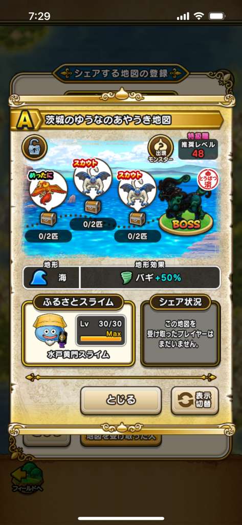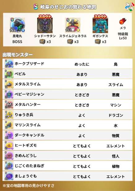 ドラクエウォークの宝の地図検索ツールです。配布中の地図や、人気順やお宝モンスターの多い順に検索可能!チェック機能もあります!仲間モンスターや出現モンスターでの検索や、確認用の画像も掲載しています!