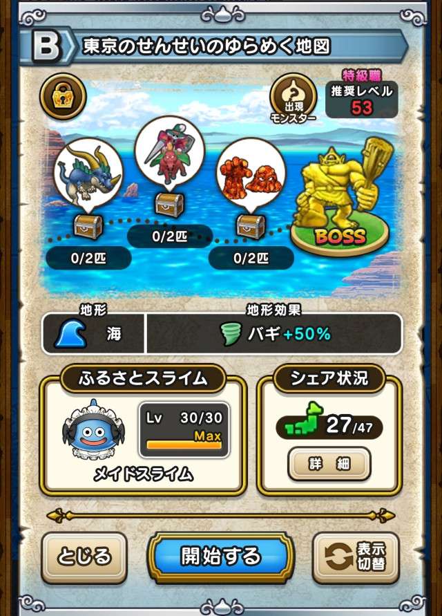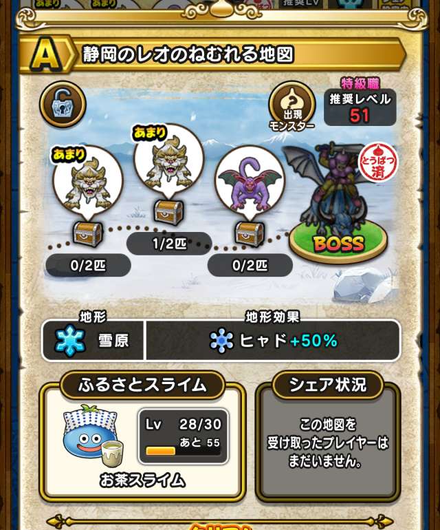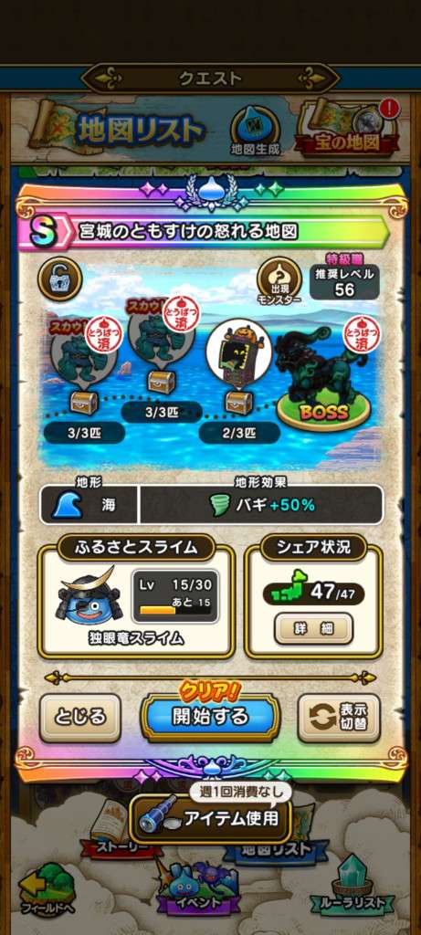 ドラクエウォークの宝の地図検索ツールです。配布中の地図や、人気順やお宝モンスターの多い順に検索可能!チェック機能もあります!仲間モンスターや出現モンスターでの検索や、確認用の画像も掲載しています!