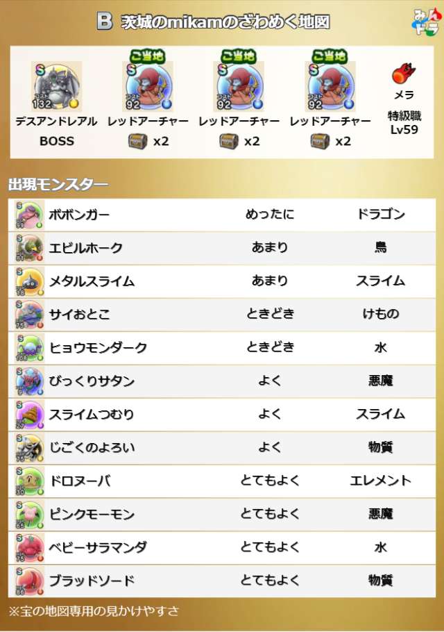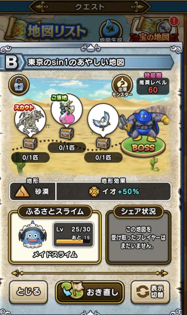 ドラクエウォークの宝の地図検索ツールです。配布中の地図や、人気順やお宝モンスターの多い順に検索可能!チェック機能もあります!仲間モンスターや出現モンスターでの検索や、確認用の画像も掲載しています!
