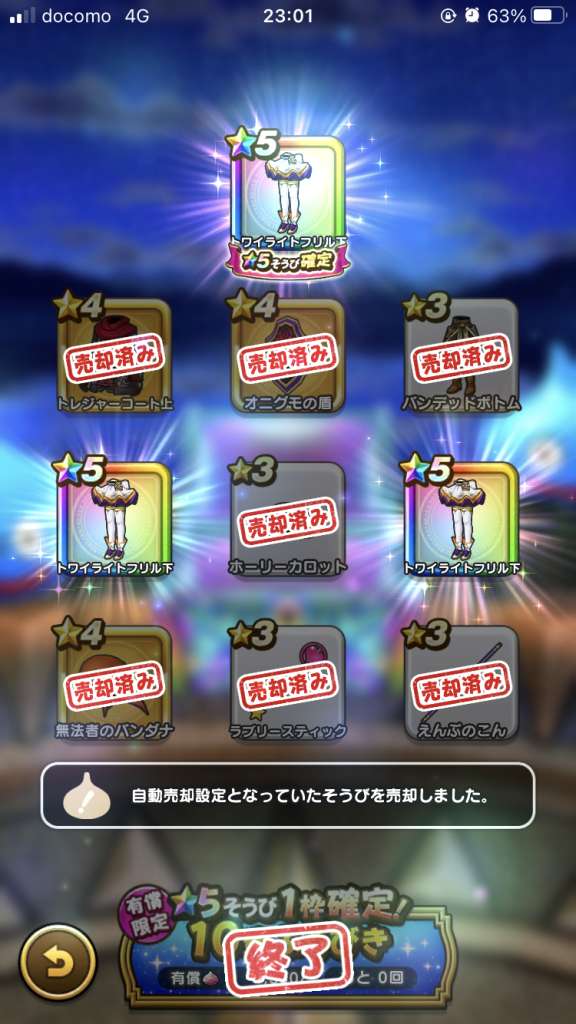 (0回/1回)![]() レジェンドホース 終了明記なし | 制限(1回)![]() ダークトロル 終了明記なし | 制限(1回)![]() ラゴンヌ 終了明記なし | 制限(1回)![]() ごくらくちょう 12/11(木)終了 |
