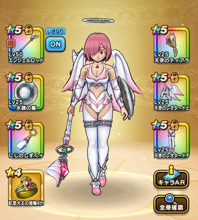 | 練度1 | 天の福音 / 消費MP 60 女神セレシアに祈りをささげ 呪文で仲間全員のHPを回復する |